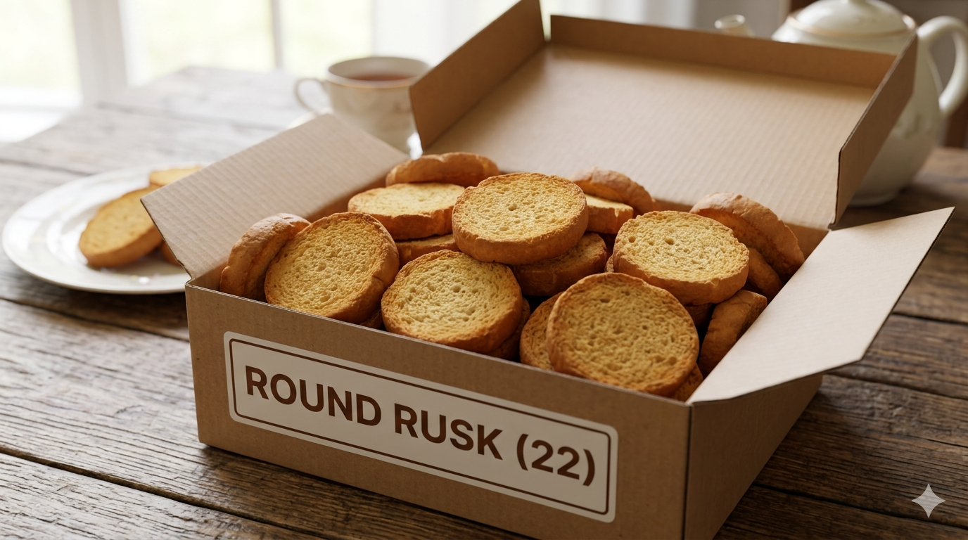 Enjoy the perfect golden crunch with these expertly twice-baked round rusks, offering a delicate snap and a subtle sweetness that makes them the ideal companion for your daily tea or coffee.